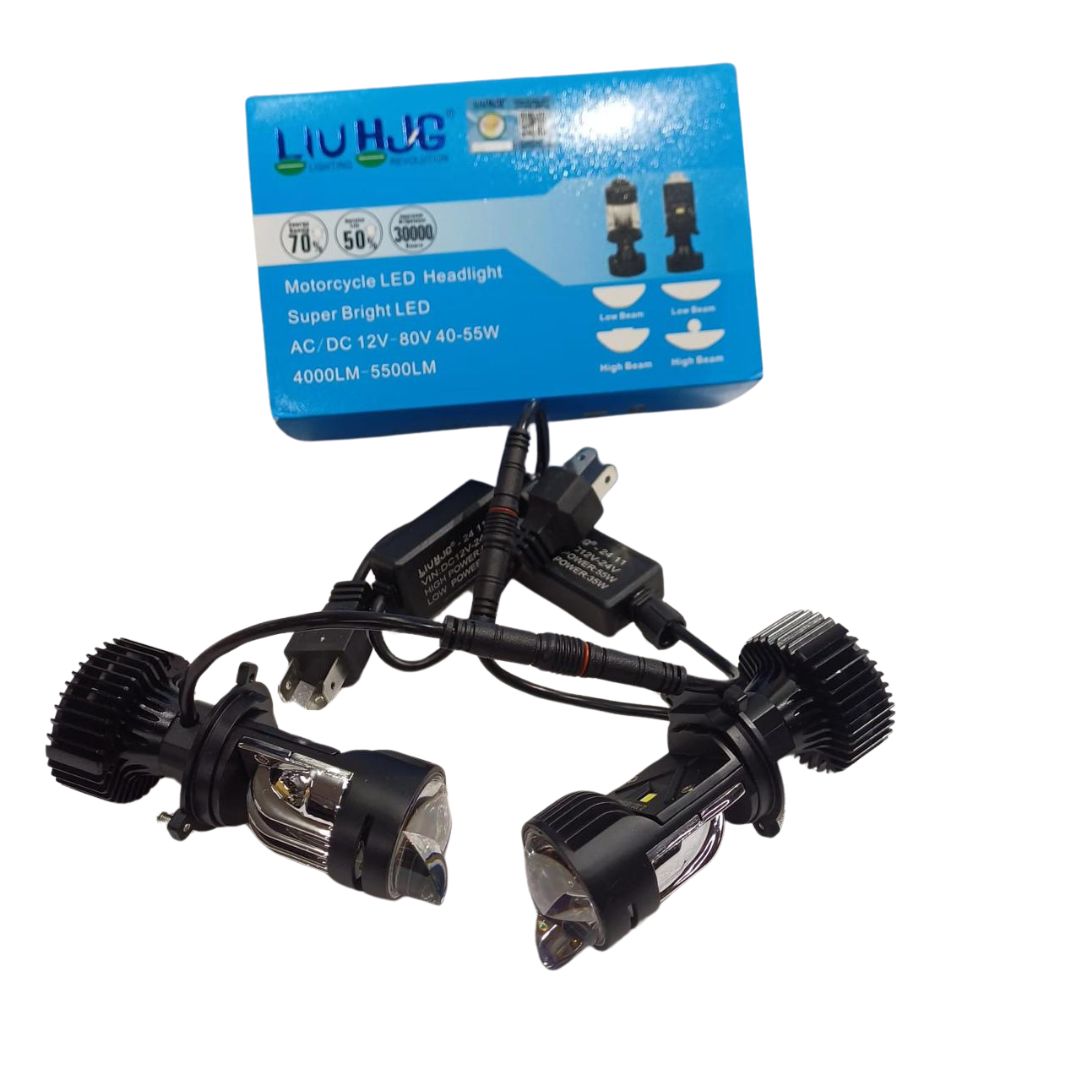 Upgrade your motorcycle's lighting with the HJG Projector Lens H4 LED Bulb. Equipped with a 60W HJG Y6 Projector Light Lamp, this bulb provides a powerful 5500LM output, ensuring enhanced visibility on the road. Its fan and mini projector lens design p