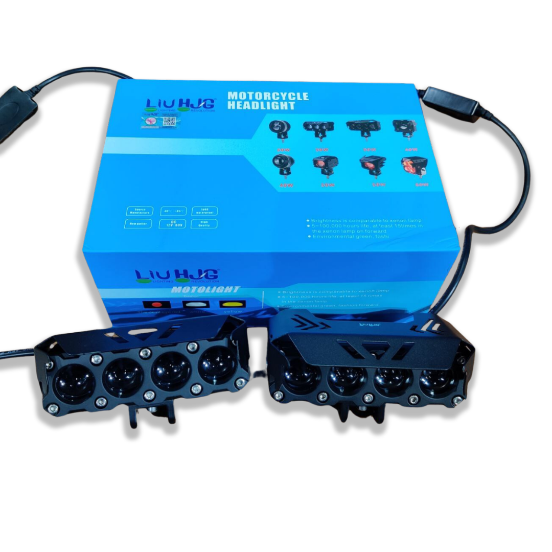 Drive with clarity and confidence using the HJG Mega Drive 4-Lens Dual Color LED Fog Lights (Pair)—a premium lighting solution designed for optimal performance in all weather conditions. Equipped with four high-intensity lenses, these fog lights provide powerful dual-color illumination in yellow and white, making them perfect for fog, rain, and nighttime rides.
