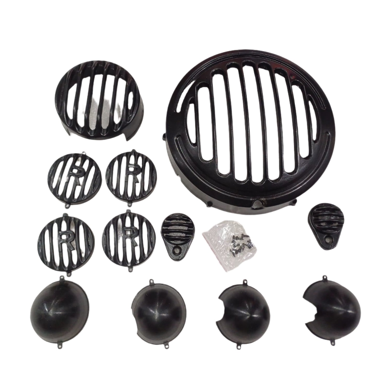 Upgrade your 2024 Royal Enfield Classic Reborn 350 or Standard Reborn Bullet 350 with these Premium Headlight Grills. Designed for perfect compatibility, these grills not only elevate your bike’s look but also offer stro