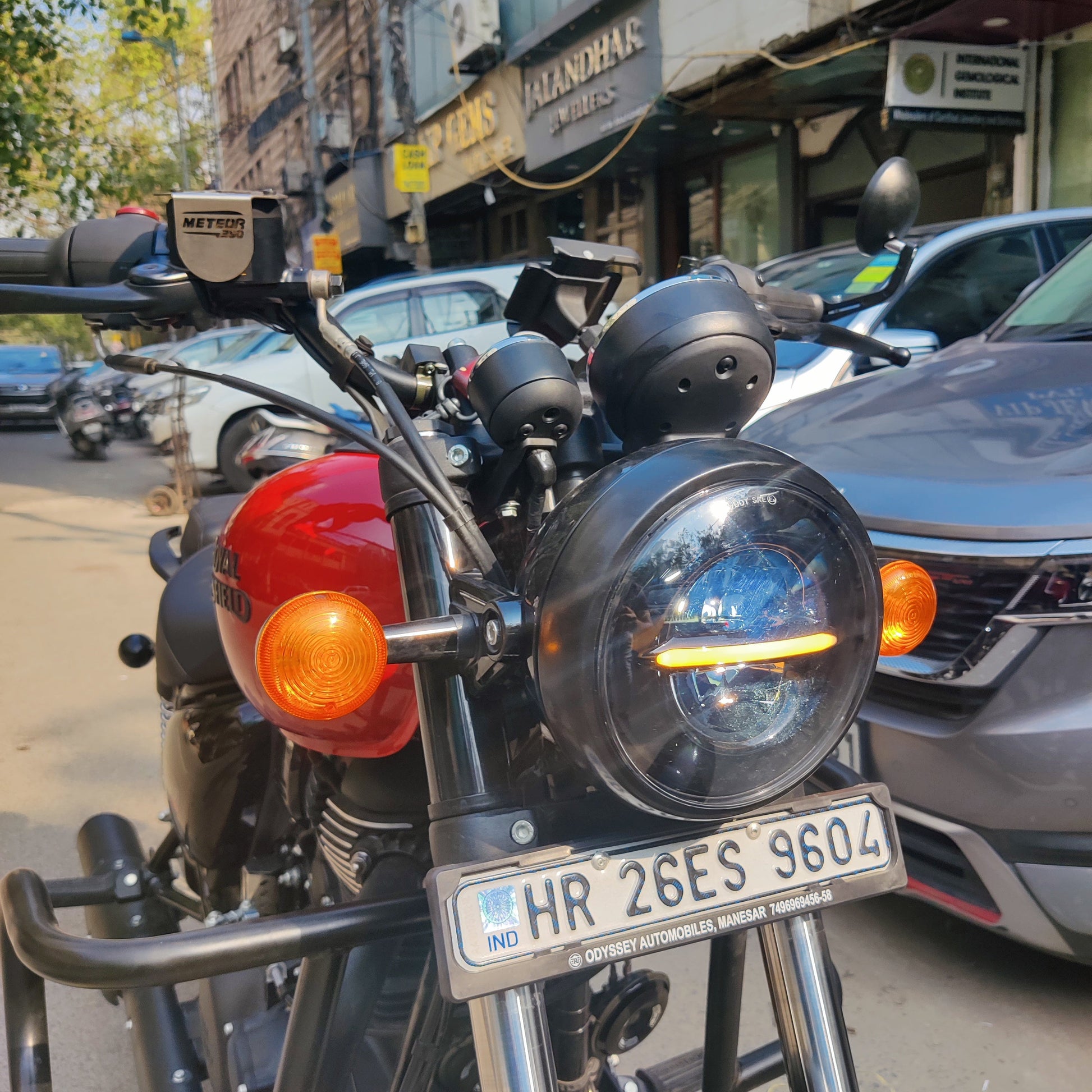 The stylish all-black headlight rim gives your Meteor 350 a bold, modern look that stands out on the road.